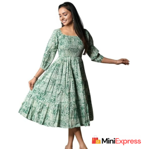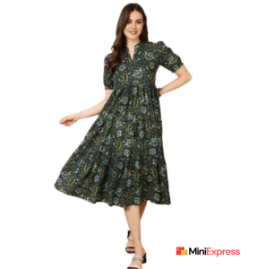 Antaran Chic Floral Print Puff Sleeve Midi Dress for Casual & Party Wear