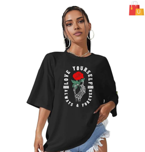 Baggy Fit Graphic T-Shirt for Women & Girls | Round Neck, Drop Shoulder, Half Sleeve Cotton Design (Sizes: S to XL) .