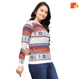 Maroon Printed T-Shirt for Women | Wool Blend with Round Neck