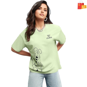 Women’s/Girls’ Oversized Graphic T-Shirt | 100% Cotton, Loose Fit, Round Neck, Half Sleeves