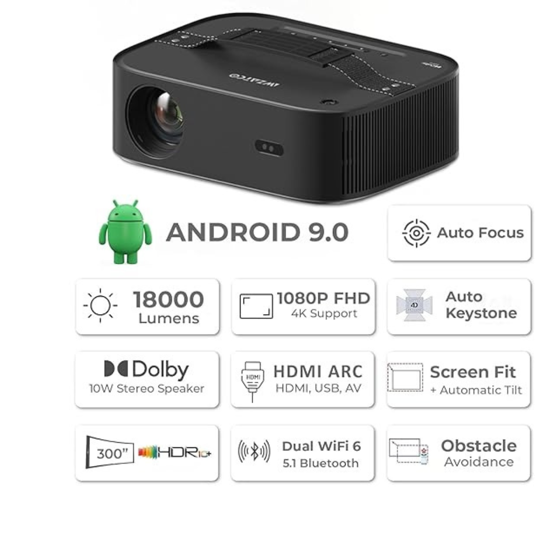 Wzatco Alpha 2 Max (Dark Edition) Ultra Bright 18000 Lumens, Native 1080P Fully Automatic 4K HDR Projector