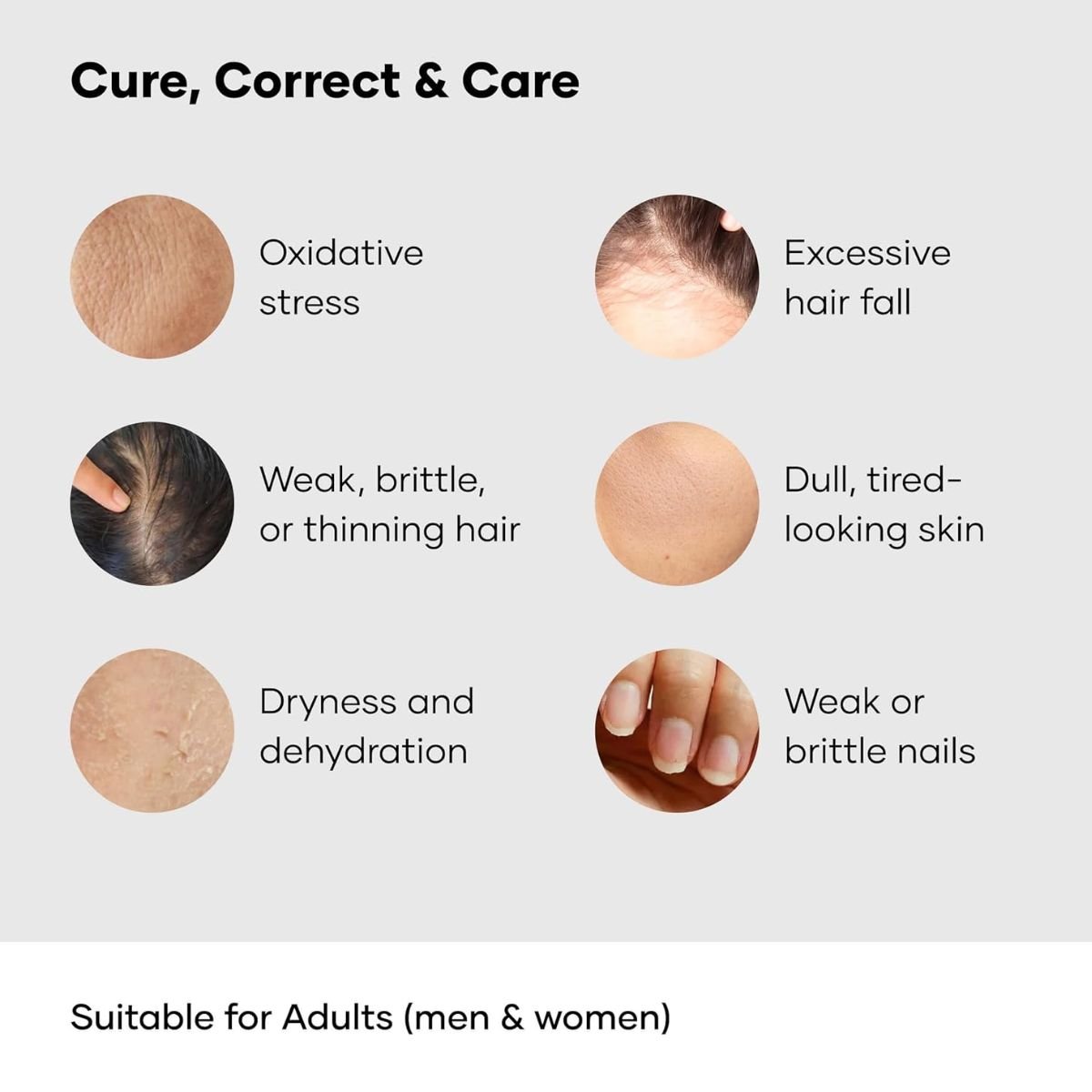 Product Benefits Provides antioxidant support, promotes healthier-looking skin, helps reduce hair fall and breakage, supports hair, skin and nails, and encourages new hair growth