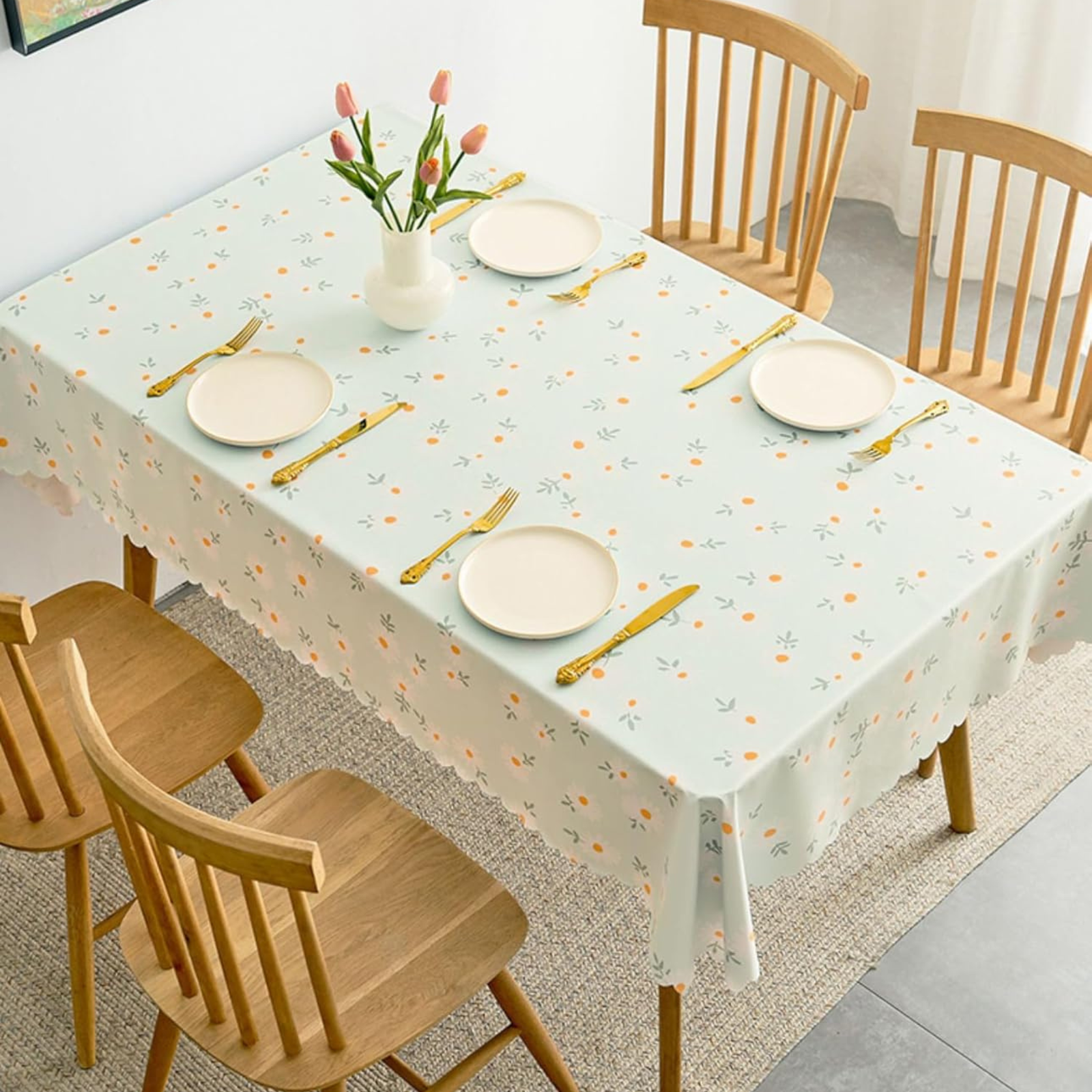 Enhance your dining area with the Durable Green PVC Table Cover designed to combine style and practicality. This 4-seater tablecloth features a delightful green daisy flower print that complements any decor. Crafted from high-quality  it offers oil-proof and waterproof protection, keeping your table safe from spills and stains while ensuring easy maintenance. Perfect for everyday use or special occasions, this table cover is an excellent choice for both dining and center tables.