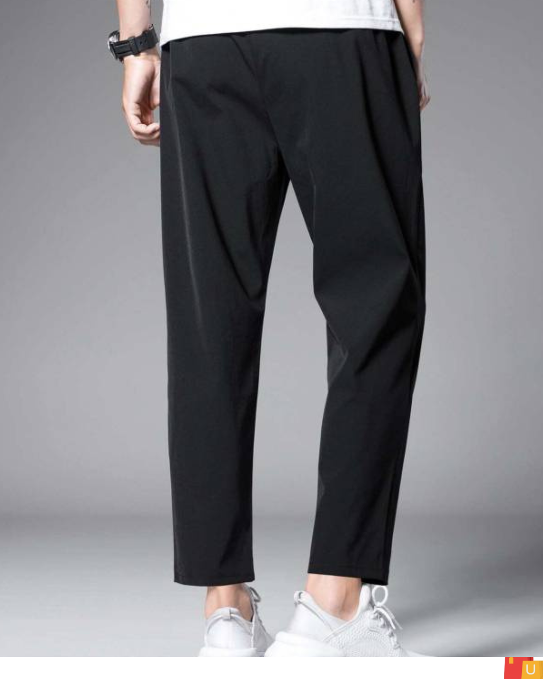 This casual, plain-patterned Men’s Solid Black Track Pants features a drawstring closure and tapered/carrot fit. Designed with a natural waistline, it offers a cropped length and loose fit for comfort. The fabric provides a slight stretch, ensuring flexibility, and is crafted Men’s Solid Black Track Pants from durable woven fabric, making it a great choice for everyday wear.These track pants feature an elasticated drawstring closure, allowing for an adjustable fit. The secure hold enhances convenience, making them a go-to option for lounging or active days. Enjoy ease and comfort with this must-have addition to your bottom-wear collection.