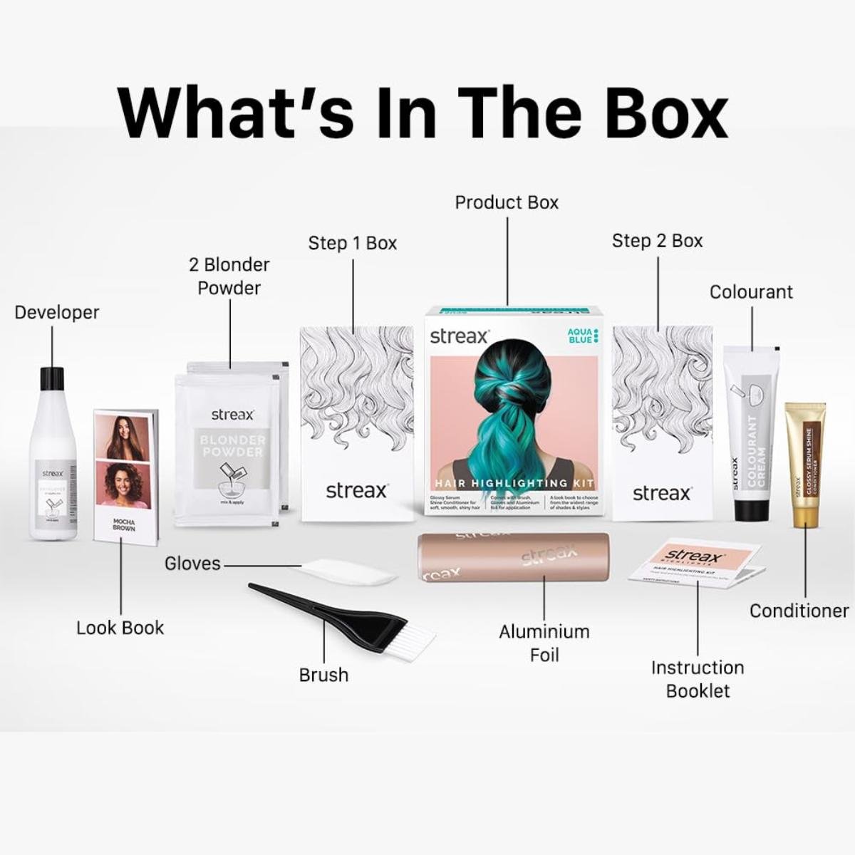Streax Hair Colour Highlight Kit | Blue Hair Colour, Aqua Blue – Pack of 1