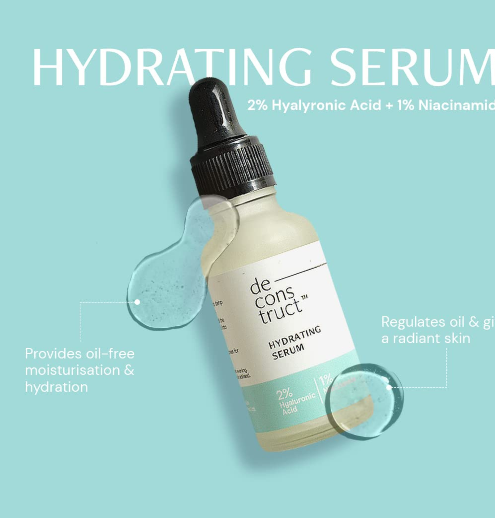 The Deconstruct Hydrating Serum  is Achieve deeply hydrated, plump, and soft skin with the Hydrating Serum infused with 2% Hyaluronic Acid and 1% Niacinamide. This lightweight, non-greasy formula provides intense hydration and oil-free moisturization while improving skin texture and elasticity. The Deconstruct Hydrating Serum is oil free best product. Deconstruct Hydrating Serum is Designed for all skin types, this serum helps combat dryness, dullness, and dehydration, leaving your skin smooth, radiant, and healthy-looking.