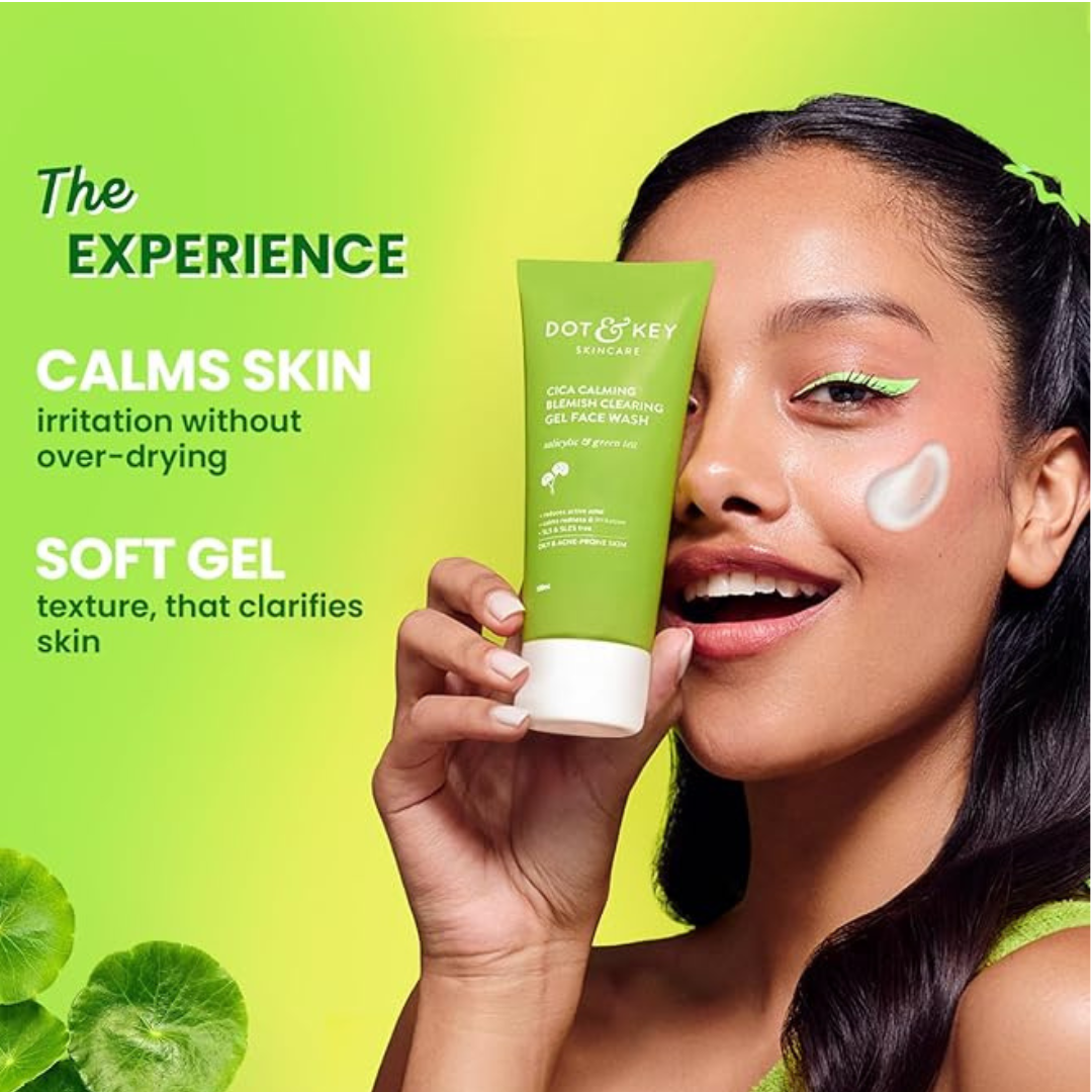 Dot & Key CICA Face Wash for Acne Prone Skin, 2% Salicylic Acid with Green Tea For Oily & Sensitive Skin