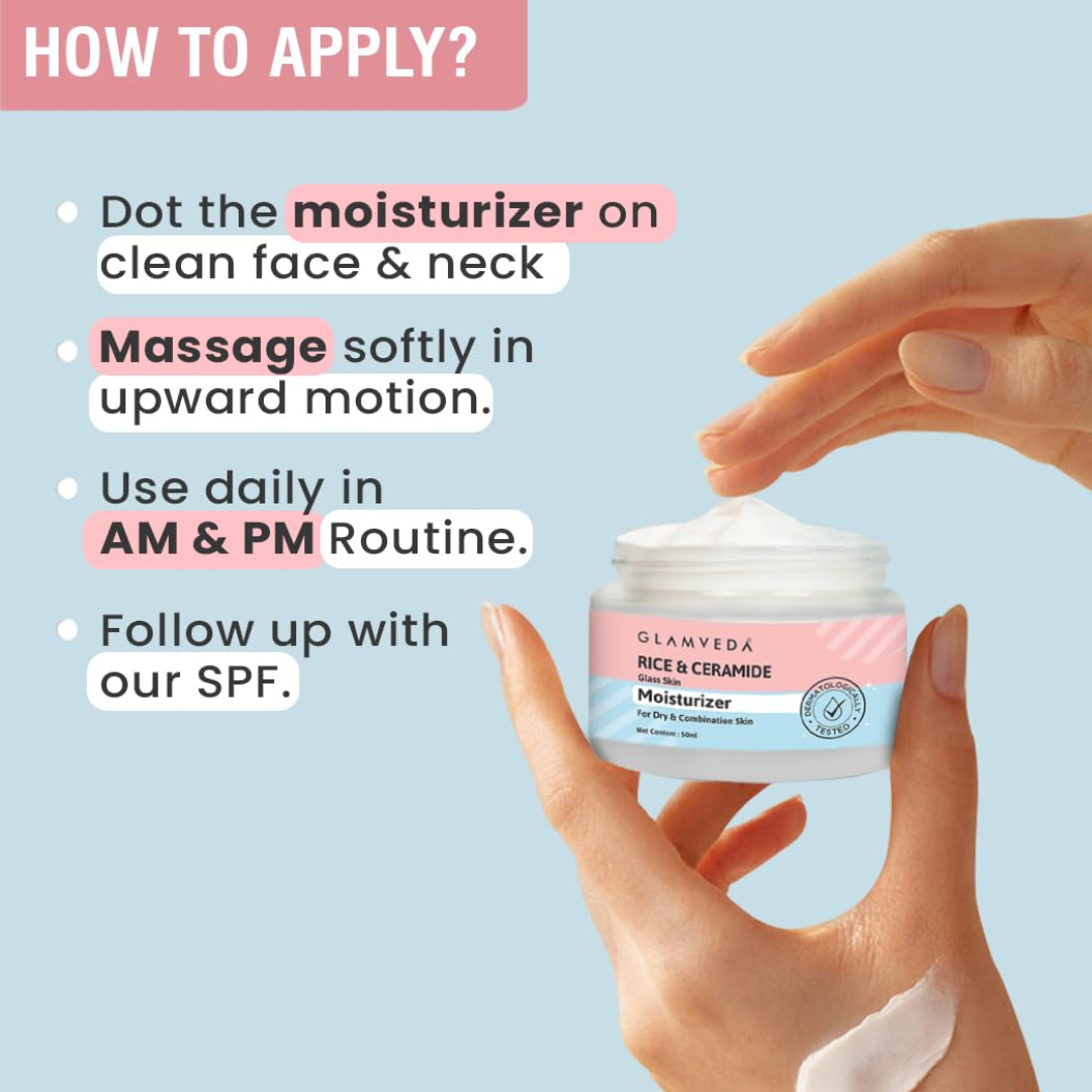 Glamveda Korean Rice & Ceramide Moisturizer Cream For Dry Skin – 50 ml
