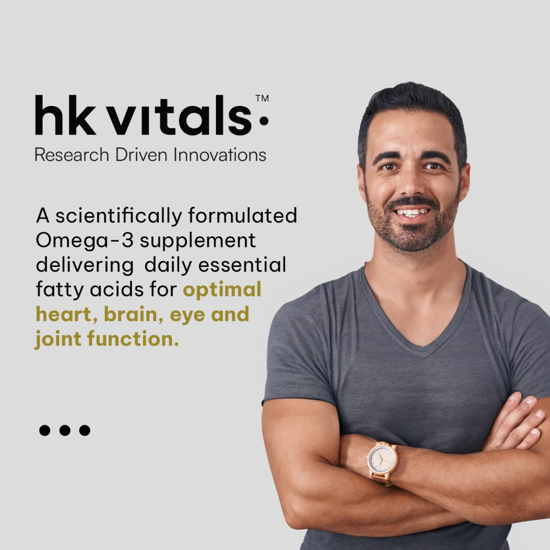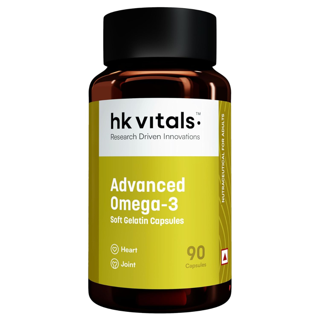Promotes Heart & Joint Wellness: With its high-quality EPA and DHA content, the hk vitals Advanced Omega 3 (90 Capsules) helps reduce triglycerides, support healthy cholesterol levels, and promote smooth joint movement. Its pure, easy-to-swallow softgels are designed for better absorption without any fishy smell or aftertaste.
