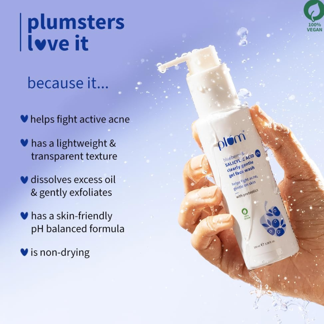 Plum 1% Salicylic Acid Clearly Gentle Gel Face Wash with Blueberry for all Skin Types 100 ml