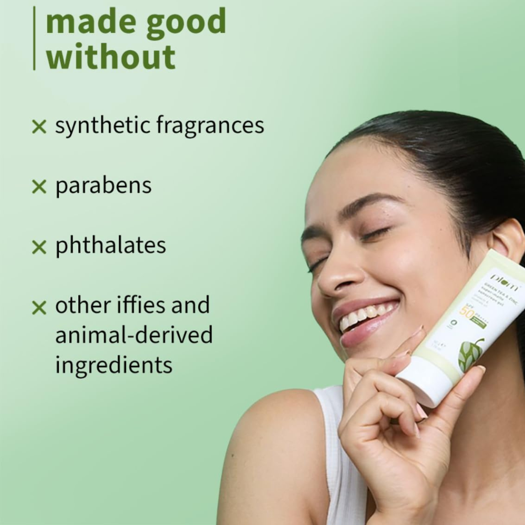 Make Plum Green Tea & Zinc Super-Matte Gel Sunscreen an essential in your skincare routine for healthy, happy skin that stays matte, protected, and breakout-free