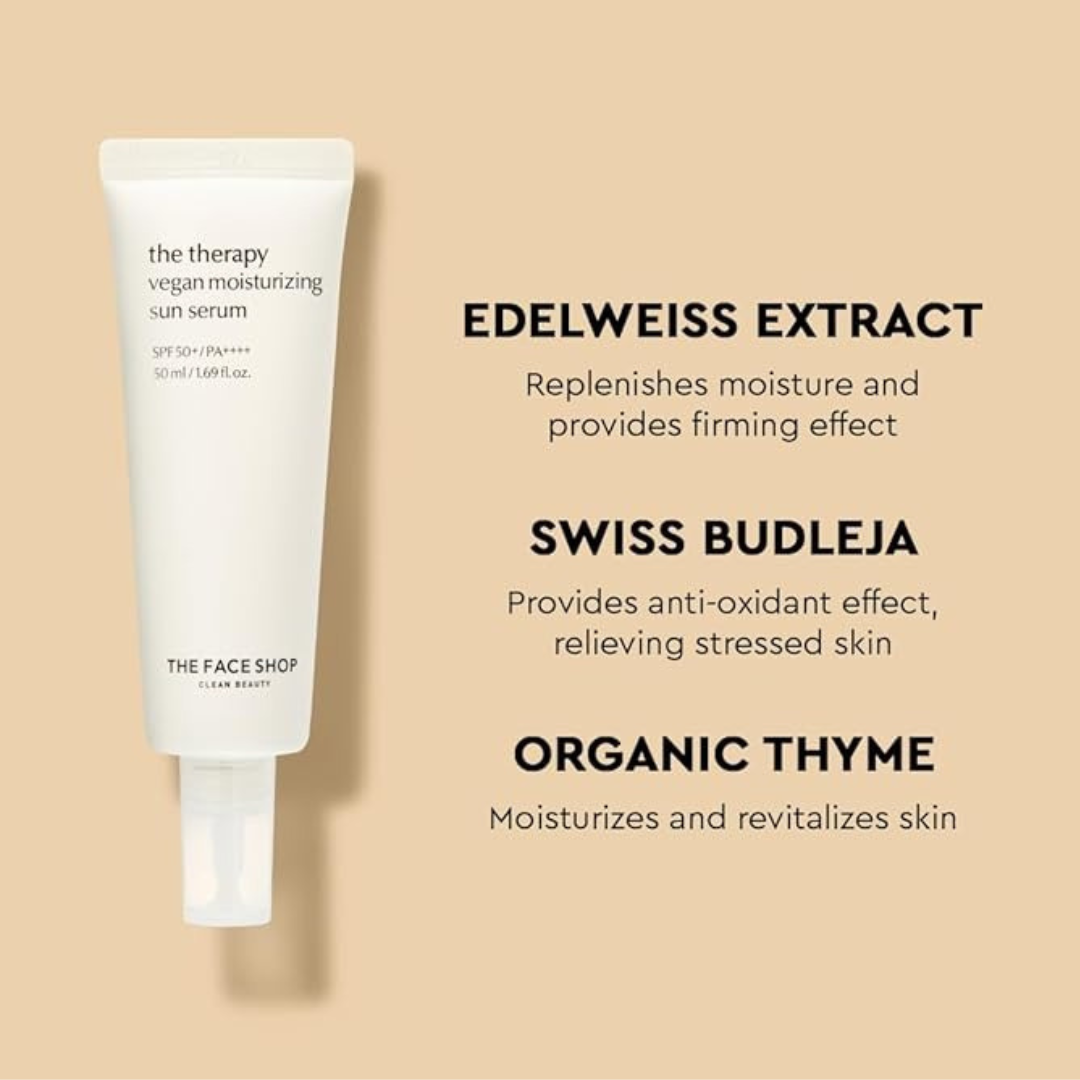 The Face Shop The Therapy Vegan Moisturizing Sun Serum With Spf 50 Pa++++ For Broad Spectrum Protection 50 ml